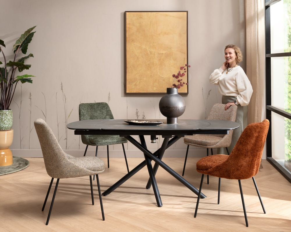 borðstofustóll - 4-fætur beinsvartir - áklæði derby