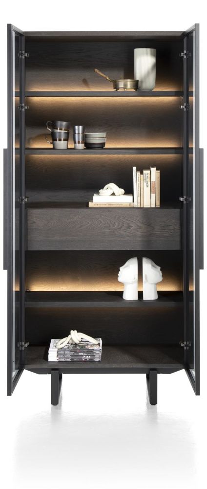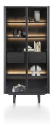 Glerskápur 96 sm - 2-hurðir + 1-skúffa (+ led) [viðarhillur] - natural