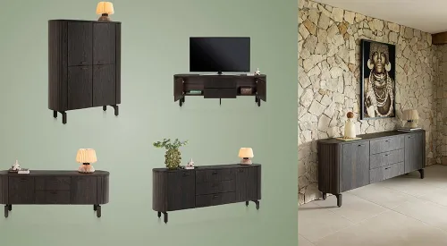 Skenkur 170 sm - 4-hurðir + 1-skúffa - Driftwood